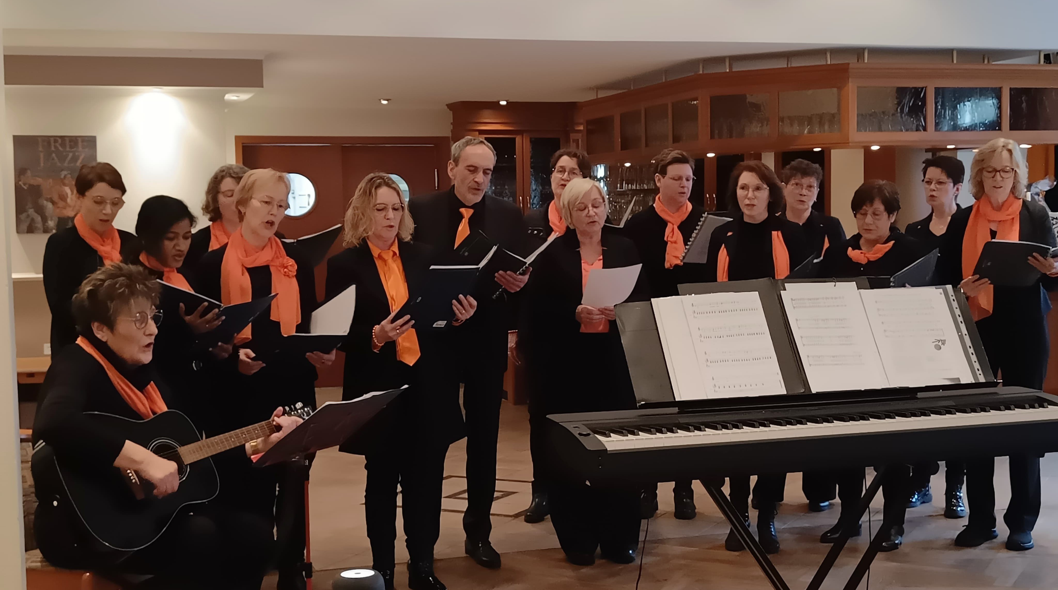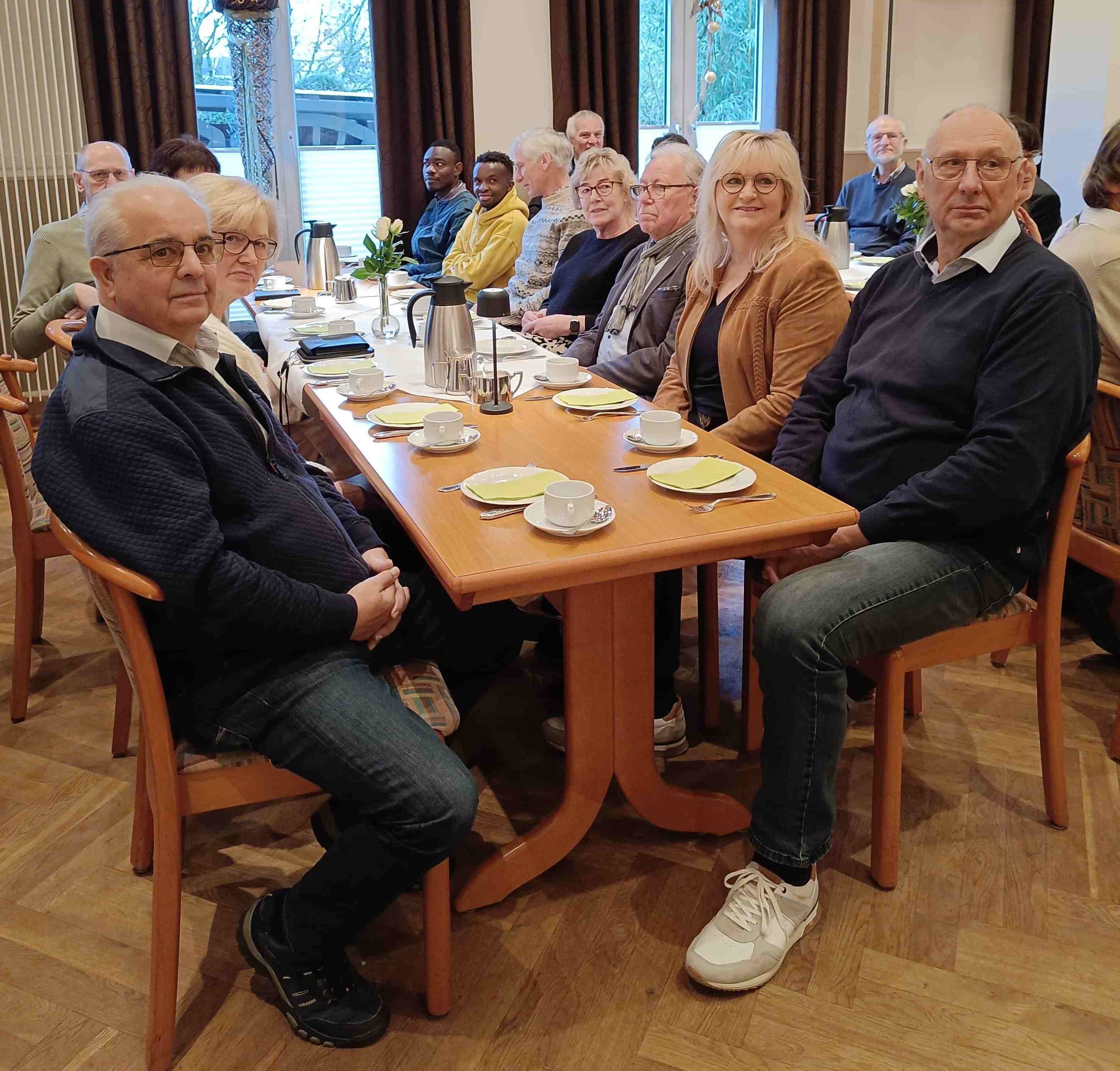 Nach dem Gottesdienst, der von unserem Präses Günter Hinxlage sehr gut gestaltet war und von unserem Kolpinggesangsteam stimmungsvoll begleitet wurde, ging es zum Frühstück in die Bürgerklause. 70 Kolpinger genossen ein wunderbares Frühstücksbuffet. Das Kolpinggesangsteam ließ mit einem Medley Weihnachtsstimmung aufkommen und der Vorsitzende Heinrich Wienken hatte die Ehre 6 Kolpinger mit einer Urkunde zu ehren.