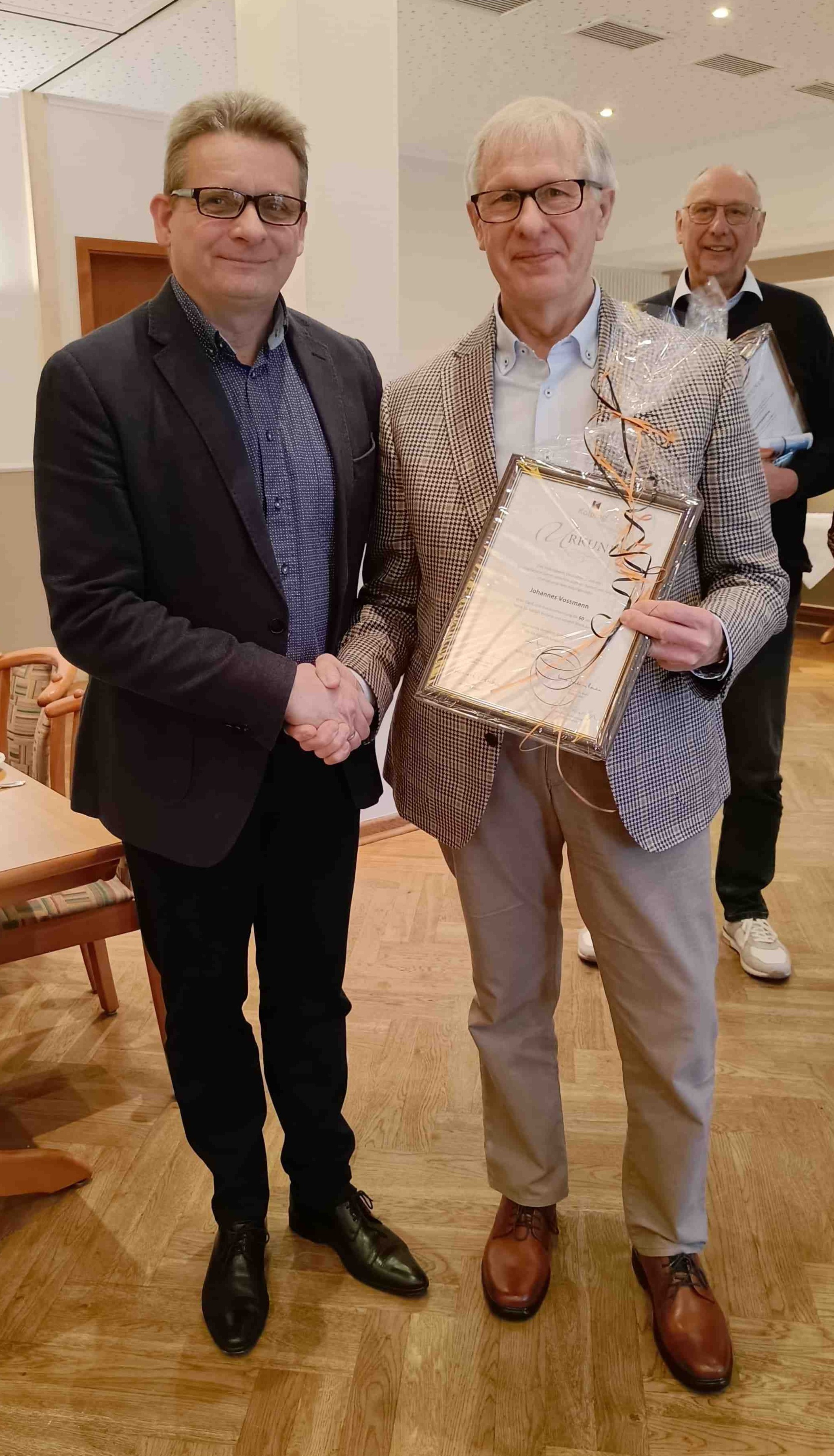 Johannes Vossmann wird für 60 Jahre Mitgliedschaft in der KF Garrel geehrt.